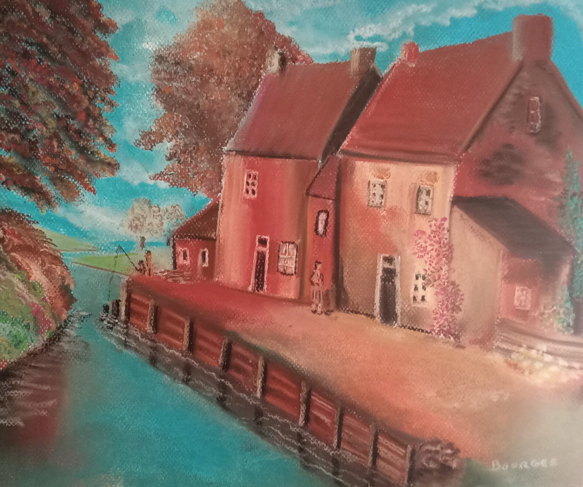 Maison réaliser au pastel sec, sur feuille mi-teinte A3